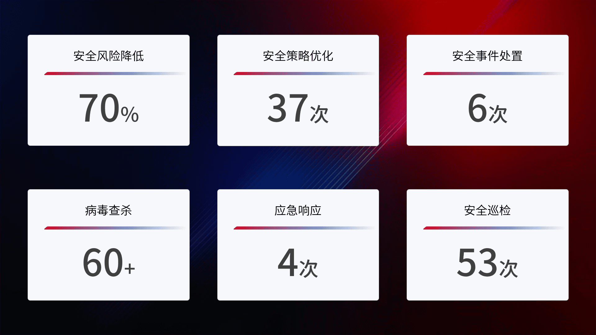 综合报告与文档服务: 定期提供安全事件处置报告、、、、周/季度总结报告和年度总结报告;详尽的文档服务可帮助客户了解网络安全状况,,支持决策制定和流程优化。。
